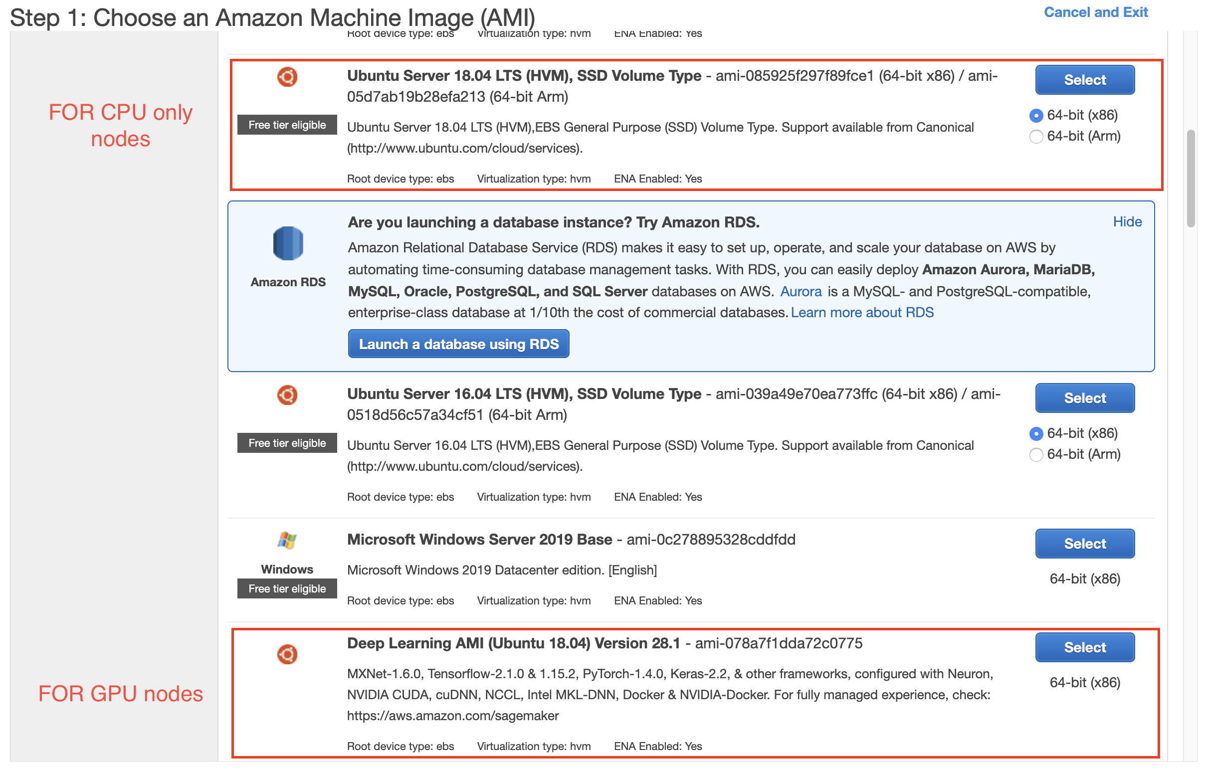 Choose a Linux based AMI instance. We recommend using "Ubuntu Server 18.04 LTS". If you plan to serve models on a GPU, we recommend using "Deep Learning AMI (Ubuntu 18.04)" because it comes with Docker Engine and NVIDIA pre-installed.