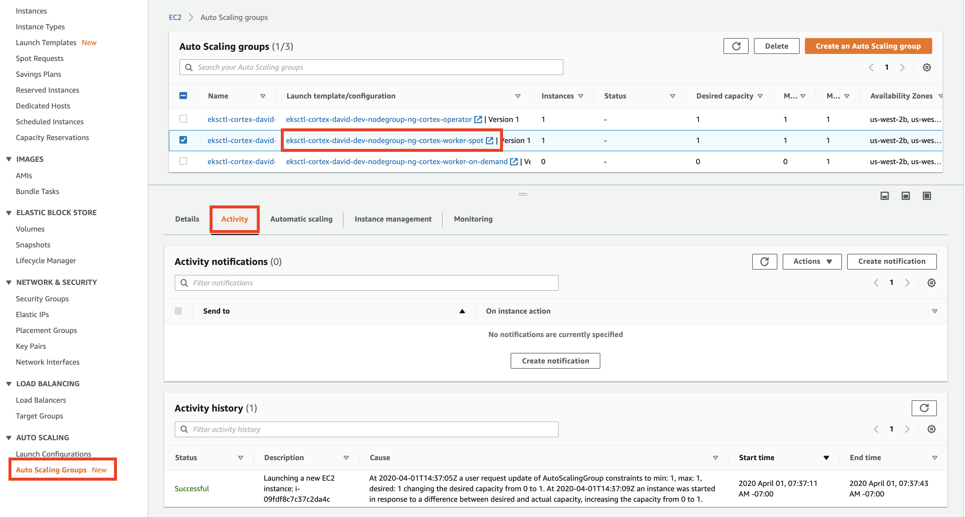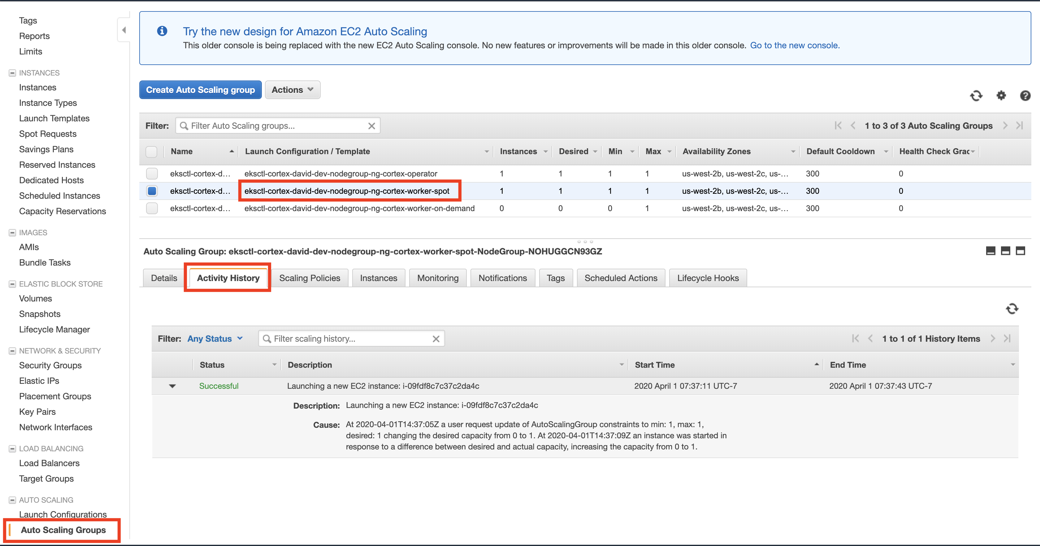 Select one of the "worker" autoscaling groups for your cluster (there may be two)