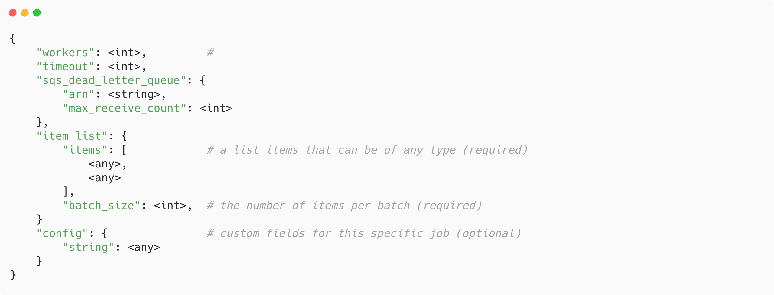 The “item_list” object contains a list of all the data Cortex needs to process, and “batch_size” tells Cortex how many items to process per batch.