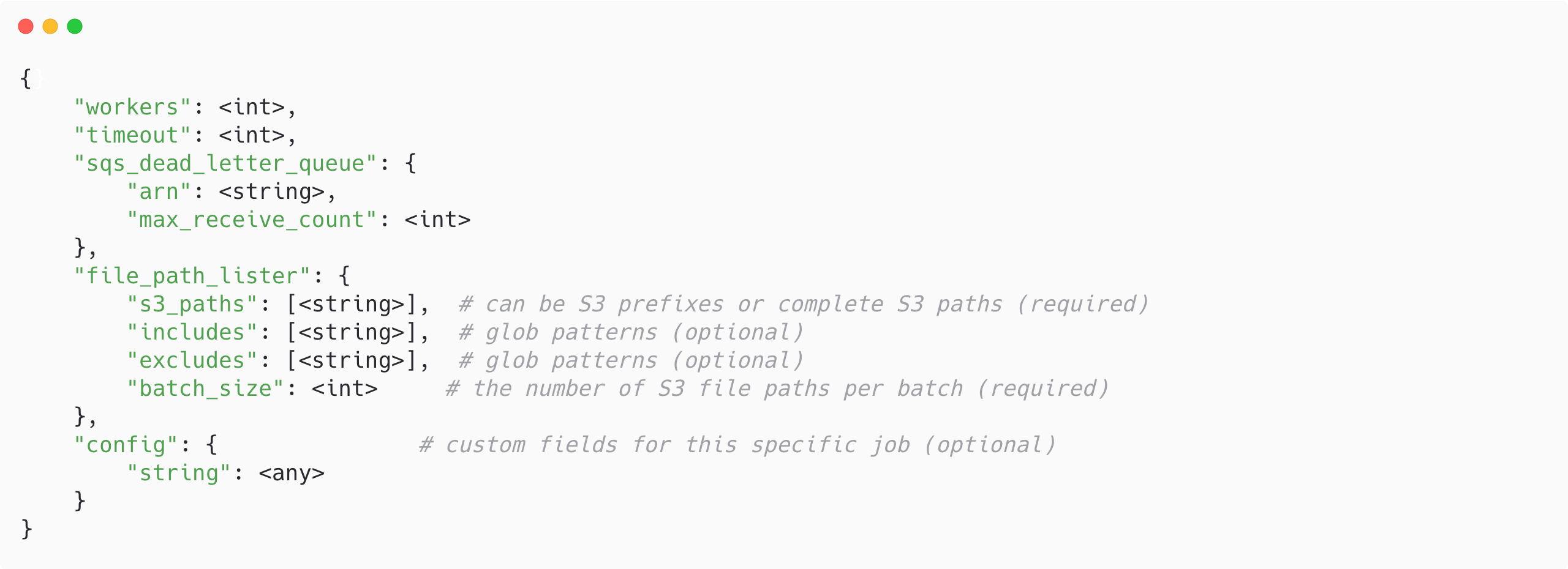 In addition to this, Cortex has an interface for when your input dataset is a newline delimited JSON file in an S3 directory (or a list of them). You can pass Cortex a link to your JSON file(s), and it will break the data apart into batches. This is particularly useful when one or more S3 files contains a large number of samples and must be broken down into batches: